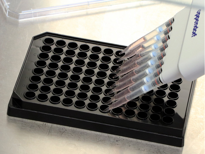 • 用于高通量細胞分析實驗的黑色圓形孔、平底、透明的96孔培養板