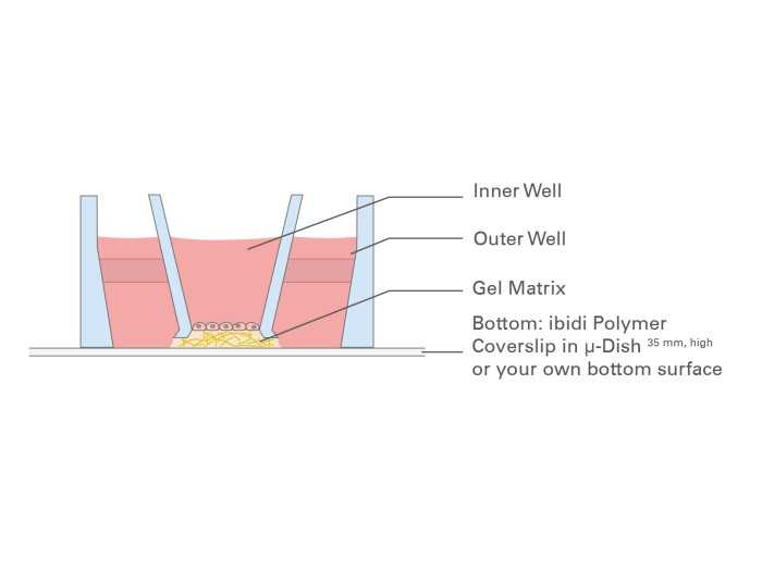 micro-Insert 3D插件通過為其產品提供多種靈活的應用,提供了一系列技術分析的可能性。它主要用于在水凝膠上創建細胞層,形成細胞界面,將腔室分為基底和頂端兩部分。此外,還可以輕松進行各種改良,例如將細胞或球狀體/類器官嵌入凝膠基質中。此外,還可以在外層孔中培養細胞,從而增強共培養實驗的靈活性。