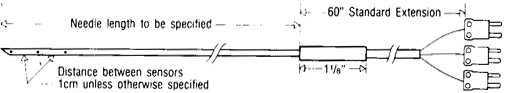 We also manufacture interchangeable single sensor probes and microprobes available in many configurations. Our thermocouple probes include clinical probes-skin, rectal, oral and esophageal. There are implantable needle and flexible sensors and probes for measuring surfaces, liquid and air. See our data sheet on interchangeable probes and sensors for more descriptive information on individual probes.